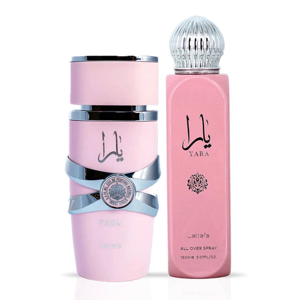 Yara by Lattafa is a soft, creamy fragrance that blends tropical sweetness with warm florals and smooth vanilla. Light yet long-lasting, this scent feels fresh and feminine from the very first spray. The Eau de Parfum offers a rich, elegant finish, while the All Over Spray refreshes with a delicate touch of the same beloved aroma.