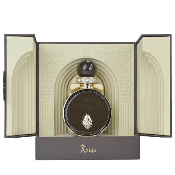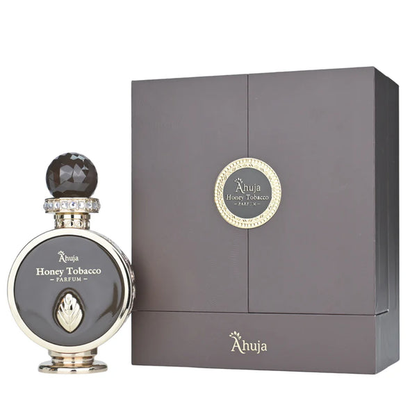 AHUJA – HONEY TOBACCO | “Built on smoke. Glazed in gold.” A bold declaration of warmth, depth, and quiet power. Honey Tobacco opens with the unmistakable punch of tobacco absolute — raw yet refined, dense yet controlled. A touch of dark honey smooths the edges, not adding sweetness, but heat — like warmth poured through molten amber. In the heart, the tobacco deepens. Spices rise. Resins soften the center. Tonka bean and labdanum wrap around the blend, giving it a warm, resinous depth that feels like smoke curling through gold light. The dry down rests on burnt woods, smoky amber, and golden balsams, leaving behind a trail of strength — warm, thick, atmospheric, and impossible to forget. Crafted with 35% organic/natural parfum oils for long wear and a commanding presence. Packaged in a premium dark-brown embossed luxury box with a golden interior and ornate arch framing the bottle, Honey Tobacco is as stunning to display as it is to wear. Honey Tobacco is not about sweetness. It’s about strength — the kind that lingers long.