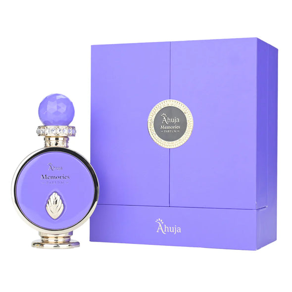 AHUJA Memories – 3.4 oz Parfum | Unisex Elegant Floral Amber Scent | 35% Long Lasting Oil | Pink Pepper, Bergamot, Rose, Milky Accord, Patchouli, Ambroxan | Luxury Purple Gift Box