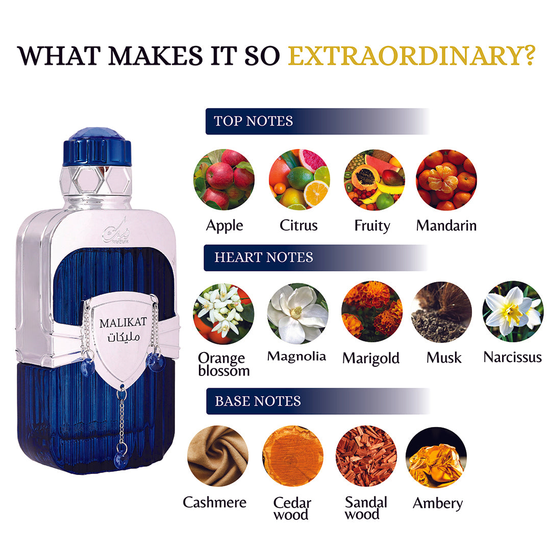 Experimenta el lujo con MALIKAT UNISEX EDP, con notas clave de manzana, cítricos y mandarina...