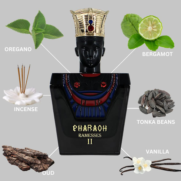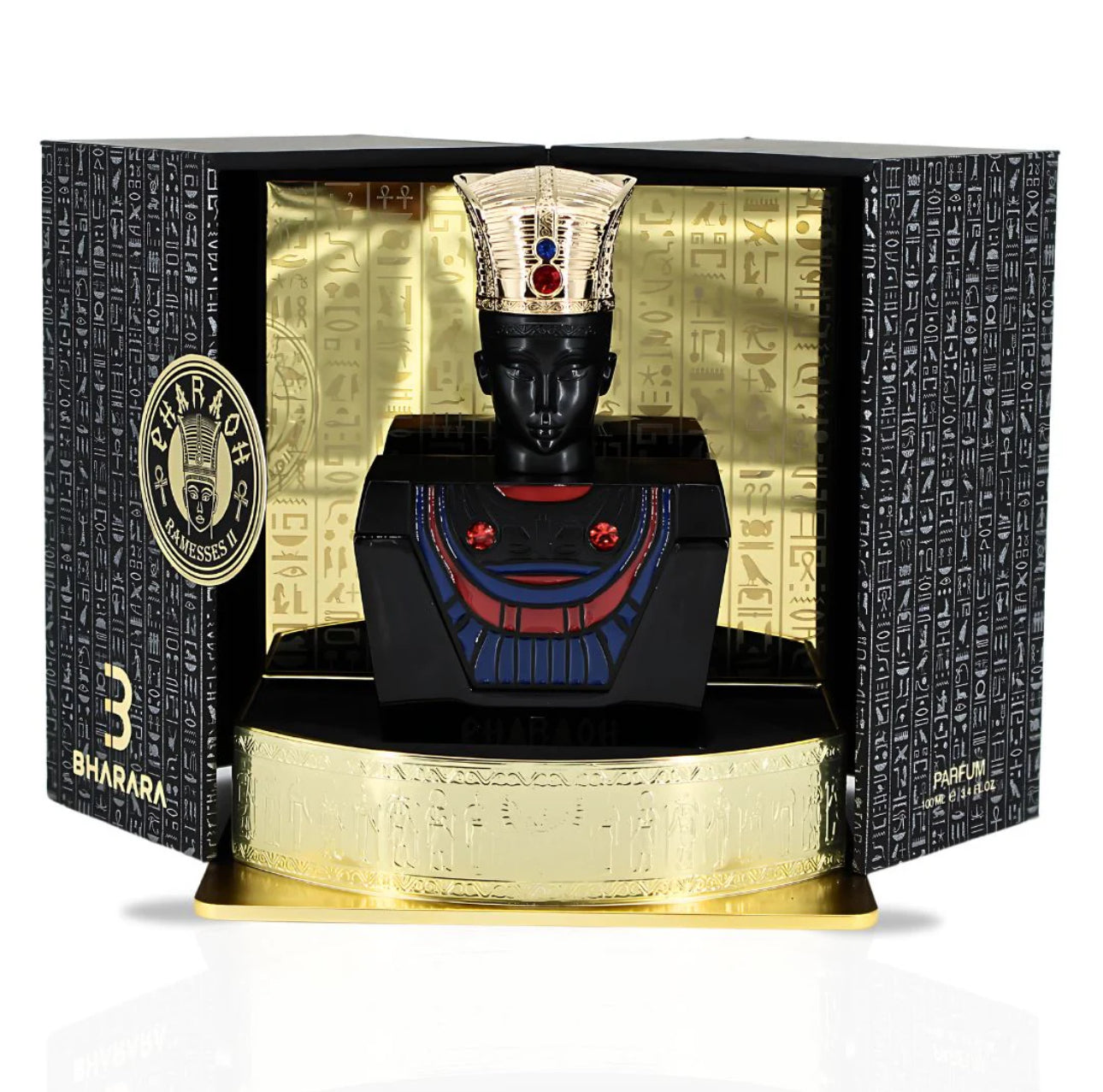 Pharaoh Ramsés II Eau De Parfum Spray 100ML (3.4 OZ) de BHARARA | Audaz, picante y profundamente ahumado con un acabado lujoso de oud, cuero y vainilla.